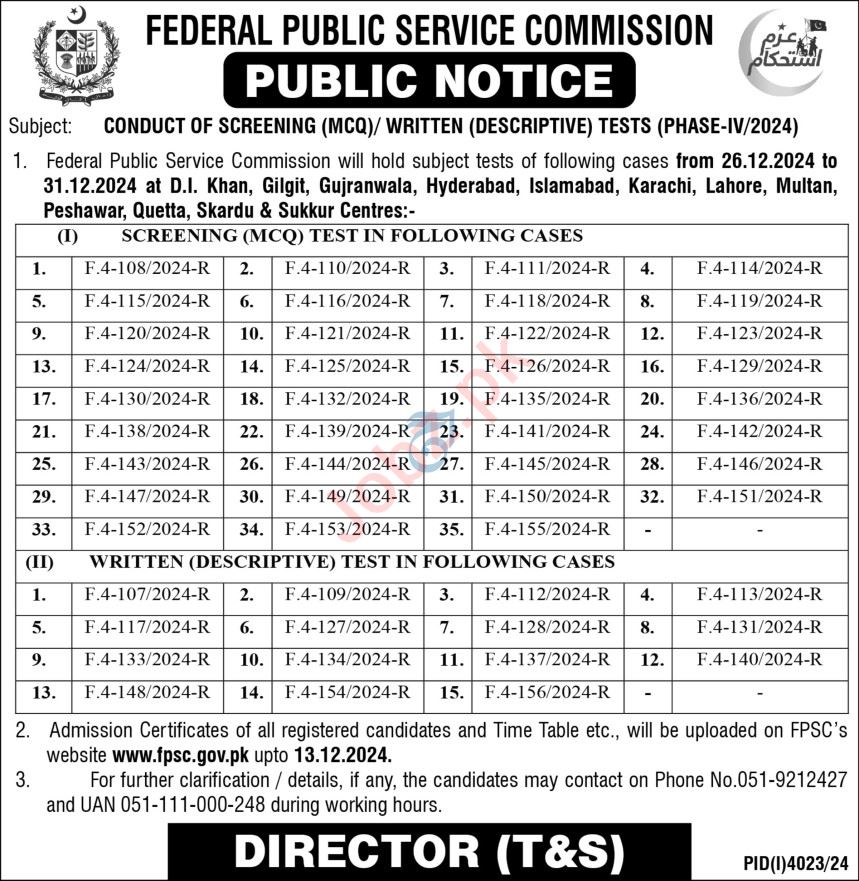 Federal Public Service Commission FPSC invites applications for job positions advertised in daily Aaj dated 15 December 2024 for following vacancies in Islamabad, islamabad Islamabad Pakistan.