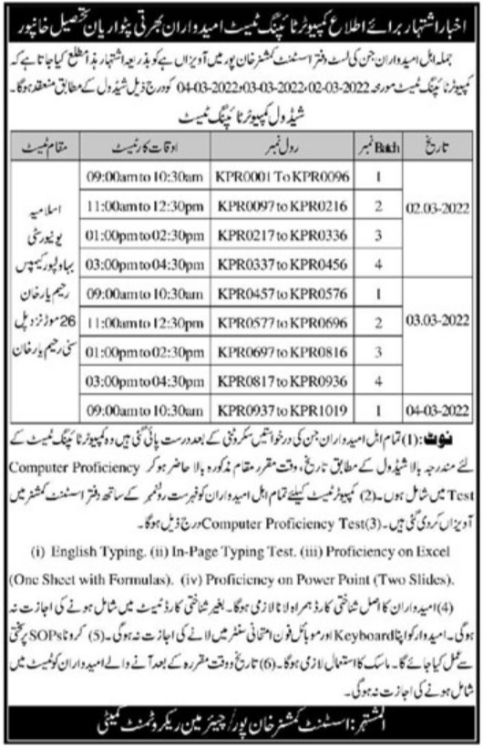Vacancies in Revenue Department Advertisement February 2022