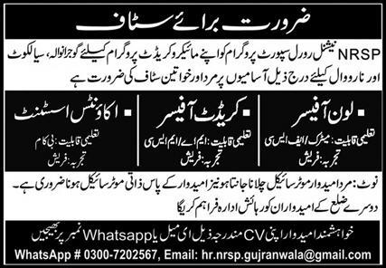 National Rural Support Programme NRSP is looking for candidates for following posts as per job advertisement published in daily Express Newspaper of January 8, 2023 for location Gujranwala, sialkot, narowal and gujranwala Punjab Pakistan: