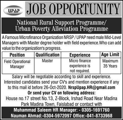Latest UPAP NRSP Organization Management Posts Faisalabad 2025