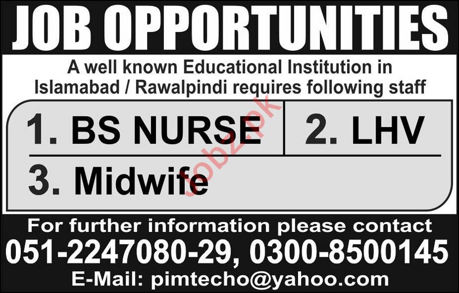 Nurse & Midwife Jobs 2020 In Rawalpindi & Islamabad