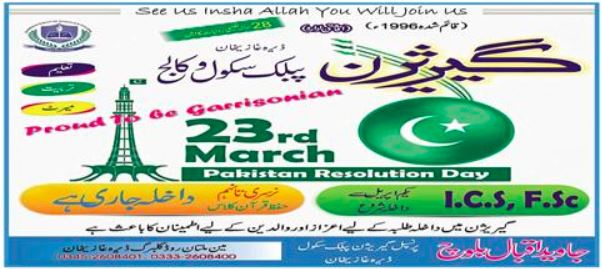 Nursery to Class 9th, ICS and FSc admissions at Garrison Public School & College