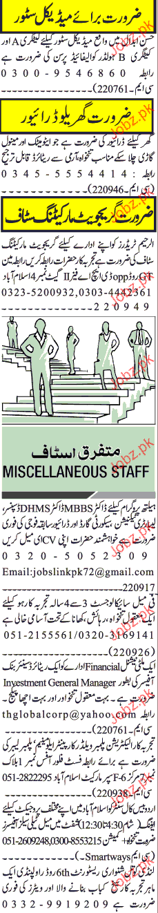 Nurses, Drivers, Marketing Staff and Doctors Wanted