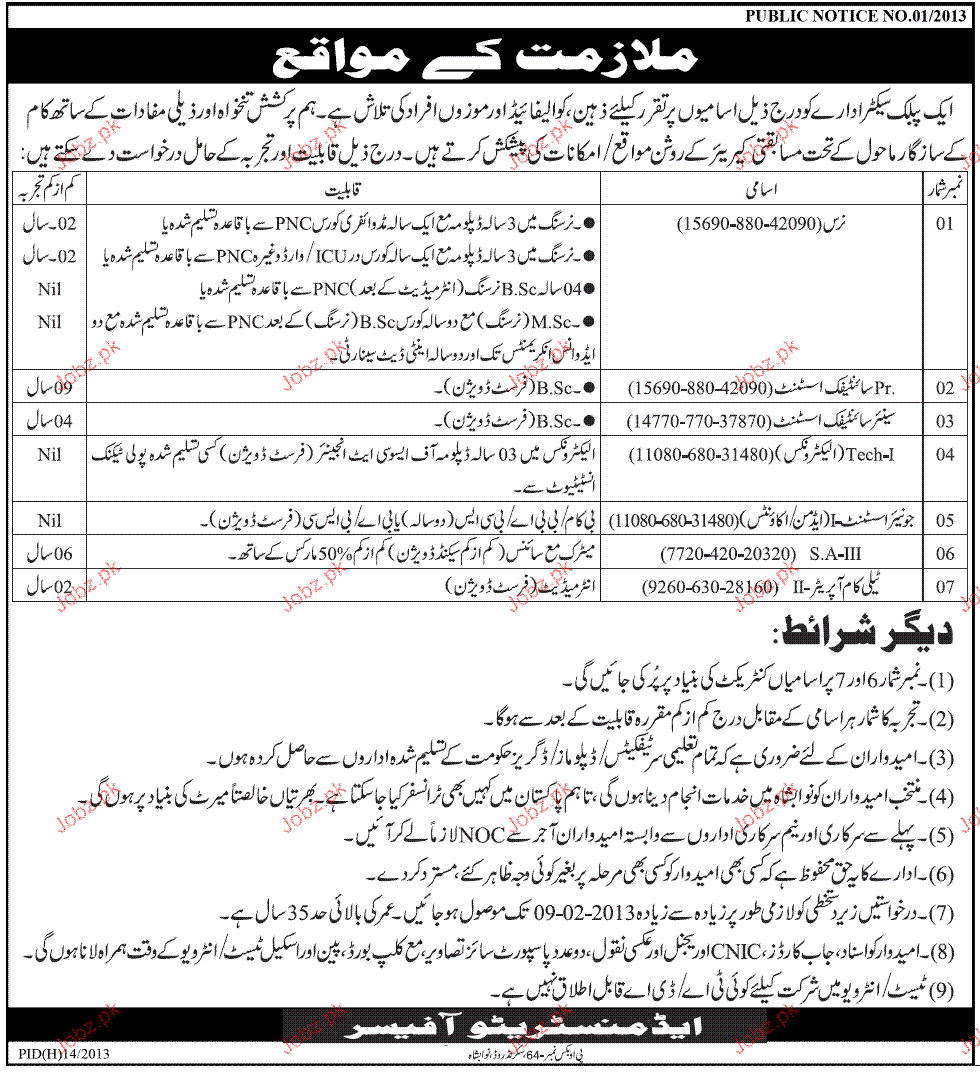 Apply as per details in job advertisement. Login to view further details of how to apply via https://www.jobz.pk online.