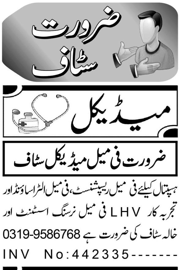 Vacant posts including receptionist, ultrasound expert, lhv, nursing assistant and khala are announced in Private Hospital Peshawar, peshawar Khyber Pakhtunkhwa KPK Pakistan as per 12 June 2025 advertisement in daily Aaj Newspaper. Educational qualifications required Intermediate, BA, Middle, Bachelor and Matric etc.