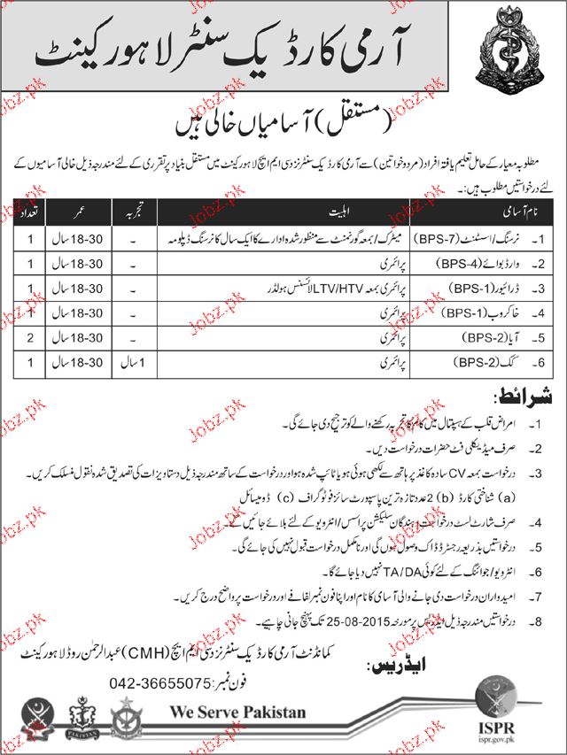 Apply as per details in job advertisement. Login to view further details of how to apply via https://www.jobz.pk online.