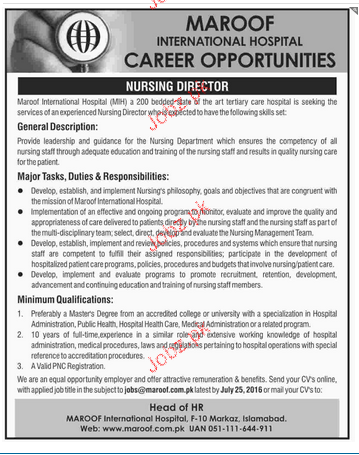 Apply as per details in job advertisement. Login to view further details of how to apply via https://www.jobz.pk online.
