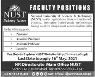 Vacancies in National University of Science & Technology NUST Advertisement May 2021