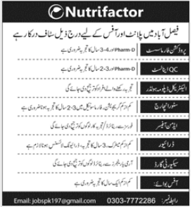Latest Nutrifactor Laboratories Pvt Ltd Management Posts Faisalabad 2025