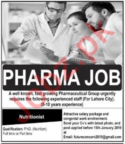 Vacancies in Pharmaceutical Company Advertisement January 2019