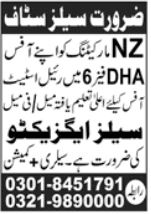 Marketing Company invites applications for job positions advertised in daily Jang dated 15 May 2022 for following vacancies in Lahore, lahore Punjab Pakistan.