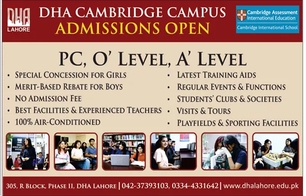 O Level and A Level Classes admissions at DHA Cambridge Campus