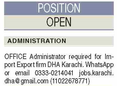 Office Administrator & Administrator Jobs 2021 In Karachi
