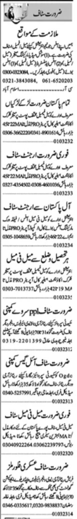 Private jobs advertisement dated about 1 March 2023 in daily Dunya Newspaper invites application for the vacant post of management staff, helper, accountant, clerk, marketing staff, security supervisor, pro, office boy, male female staff, retired air force staff, office administrator, manager, computer operator, call operator, office staff, retired navy staff, retired army staff, security guard and social media marketing manager in Multan, multan Punjab Pakistan. Preferred Education is Matric, Middle, Bachelor, Intermediate and Master etc.