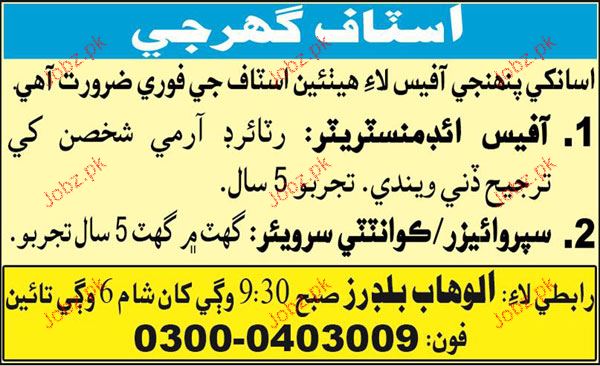 Apply as per details in job advertisement. Login to view further details of how to apply via https://www.jobz.pk online.