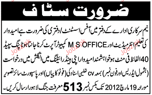 Apply as per details in job advertisement. Login to view further details of how to apply via https://www.jobz.pk online.