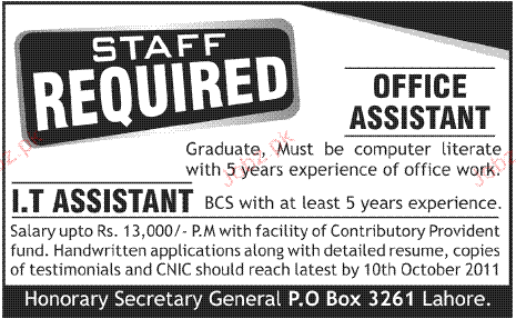 Apply as per details in job advertisement. Login to view further details of how to apply via https://www.jobz.pk online.