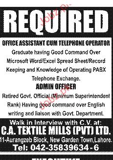 Latest Private Company Admin Clerical Posts Lahore 2025