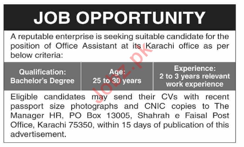 Apply as per details in job advertisement. Login to view further details of how to apply via https://www.jobz.pk online.