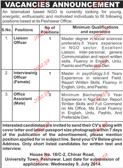 Apply as per details in job advertisement. Login to view further details of how to apply via https://www.jobz.pk online.