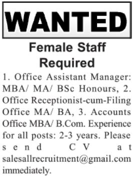 Office Assistant Manager & Office Receptionist Jobs 2022
