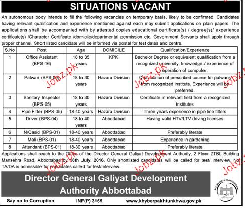 Latest Government Department Admin Clerical Posts Abbottabad 2025