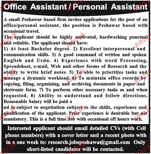 Latest Private Company Admin Clerical Posts Peshawar 2025