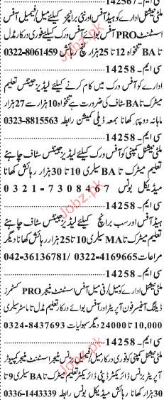Office Assistant, Public Relation Officer and Computer Operator are required in Lahore