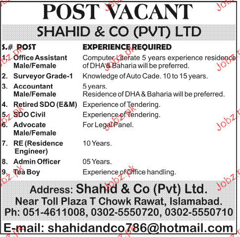 Latest Private Company Admin Clerical Posts Islamabad 2025