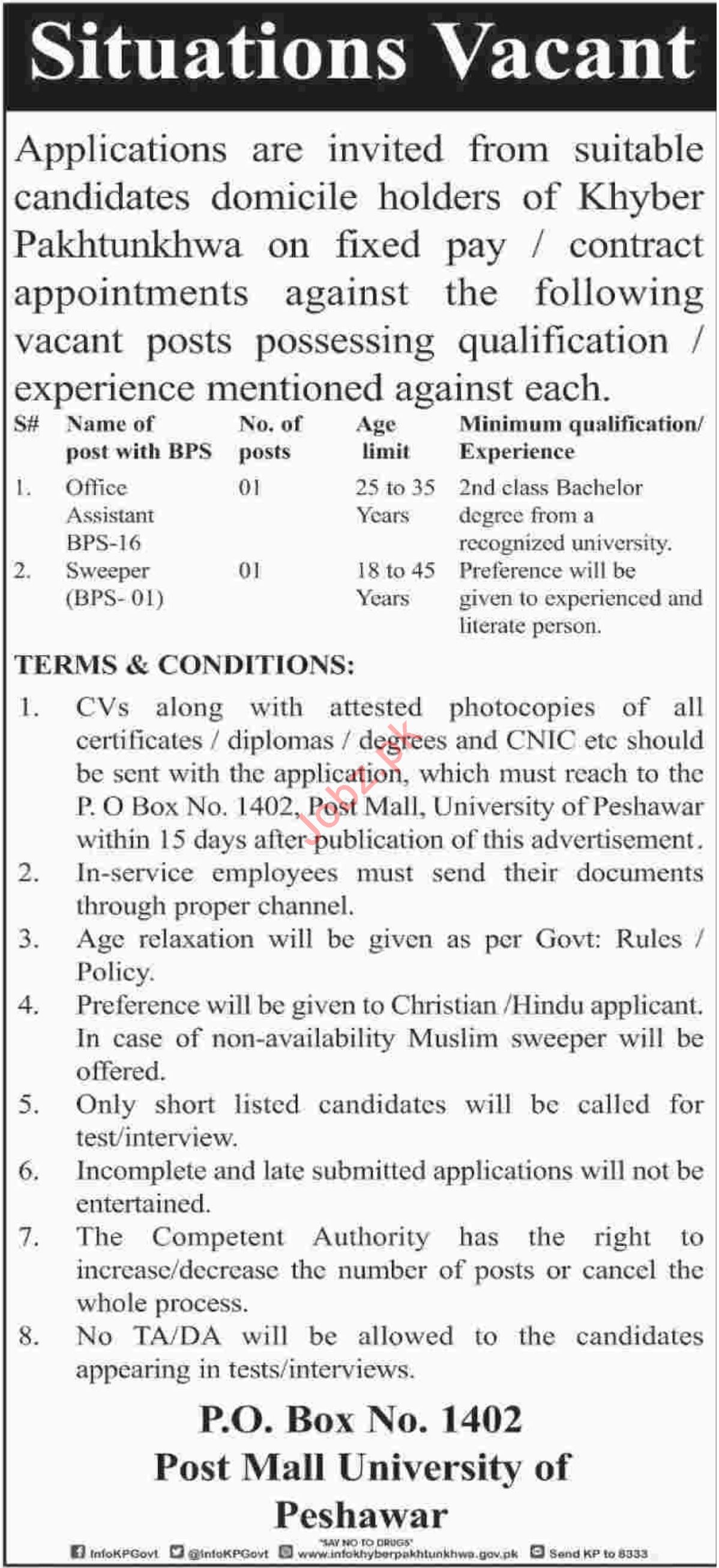 Office Assistant & Sweeper Jobs 2018 In Peshawar KPK