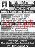 Latest The Educators Admin Clerical Posts Rawalpindi 2025