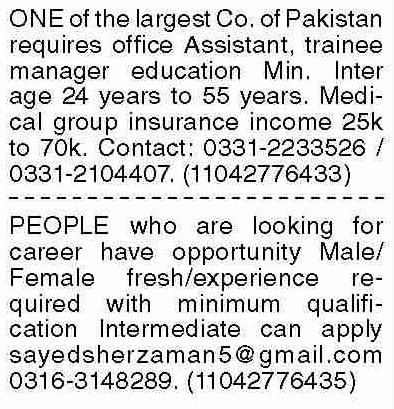 Vacant posts including office assistant trainee are announced in Private Company Karachi, karachi Sindh Pakistan as per 21 August 2023 advertisement in daily Dawn Newspaper. Preferred Education is Master, Bachelor and Mphil etc.