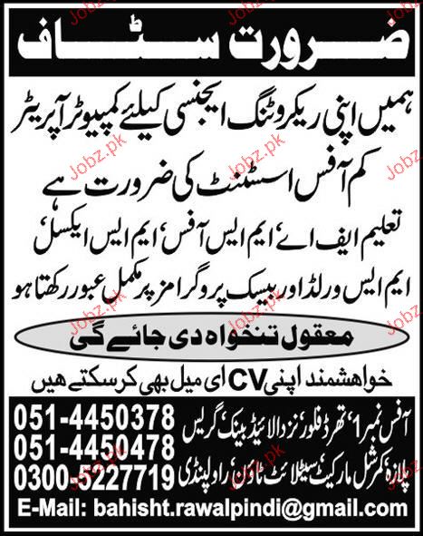 Apply as per details in job advertisement. Login to view further details of how to apply via https://www.jobz.pk online.