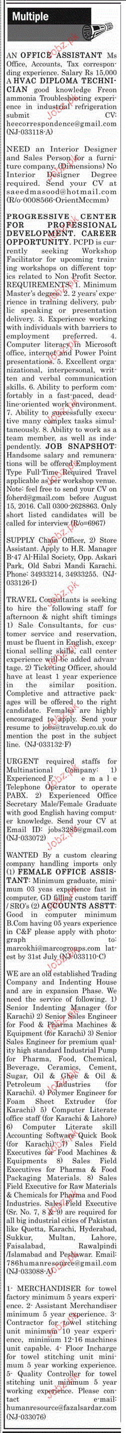 Apply as per details in job advertisement. Login to view further details of how to apply via https://www.jobz.pk online.