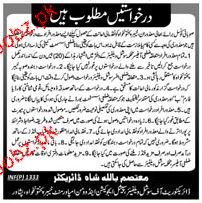 Apply as per details in job advertisement. Login to view further details of how to apply via https://www.jobz.pk online.
