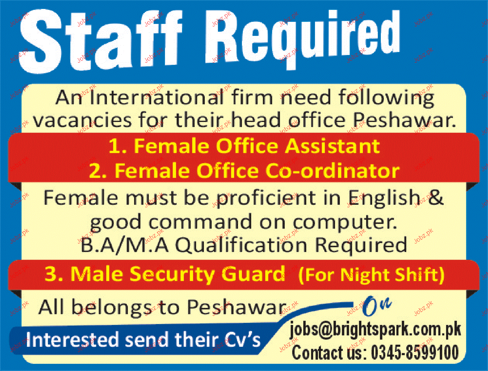 Apply as per details in job advertisement. Login to view further details of how to apply via https://www.jobz.pk online.