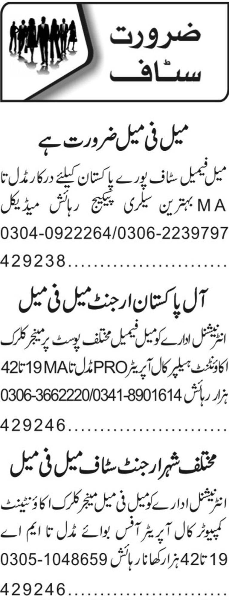 Private Multan, multan Punjab Pakistan invites applications from eligible candidates for the post of manager, helper, clerk, management staff, office boy, male female staff, computer call operator, office staff, call operator, pro and accountant as per advertisement of January 4, 2023 published in daily Roznama 92 News Newspaper. Educational qualifications required Middle, Bachelor, Matric, Intermediate and Master etc.