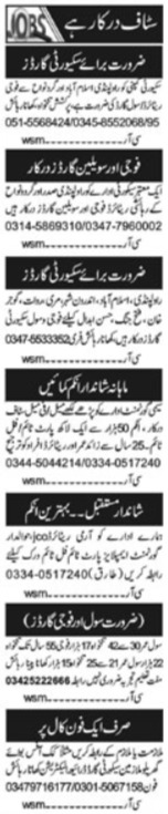 Private Company Islamabad, islamabad Islamabad Pakistan invites applications from eligible candidates for the post of security guard, electrician, fauji guard, cook, office boy, guard, house worker, civil guard and driver as per advertisement of December 10, 2022 published in daily Khabrain Newspaper. Middle, Intermediate, Bachelor and Matric etc. educational qualification will be preferred.