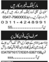 Vacant posts including cook, marketing manager, office boy, electrician, house worker, security guard and driver are announced in Private Company Islamabad, islamabad Islamabad Pakistan as per 24 April 2024 advertisement in daily Khabrain Newspaper. Persons with Matric, Bachelor, Middle, Intermediate and BA etc. education can apply.