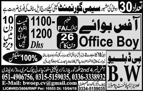 Latest BW Overseas Employment Promoters Labor Posts Dubai 2025