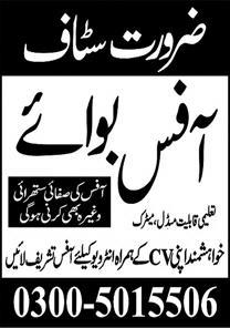 Vacant posts including office boy are announced in Private Company Rawalpindi, islamabad Punjab Pakistan as per 3 January 2023 advertisement in daily Express Newspaper. Middle and Matric etc. educational qualification will be preferred.