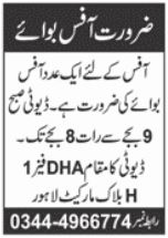 Private Office jobs advertisement dated about 21 April 2022 in daily Jang Newspaper invites application for the vacant post of office boy in Lahore, lahore Punjab Pakistan. Persons with Middle and Matric etc. education can apply.