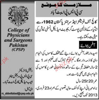 Latest College of Physician and Surgeons Pakistan CPSP Posts Abbottabad 2025