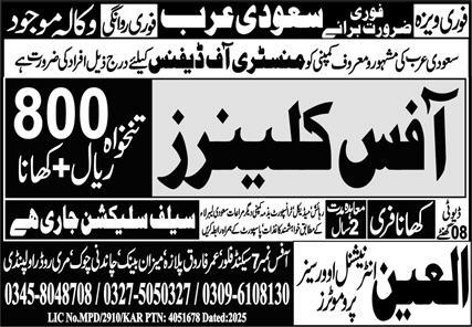 Al Ain International Overseas Employment Promoter is looking for candidates for following posts as per job advertisement published in daily Express Newspaper of November 7, 2025 for location Jeddah, tabuk Saudi Arabia: