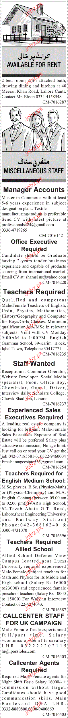 Office Executive And Teachers Job Opportunity