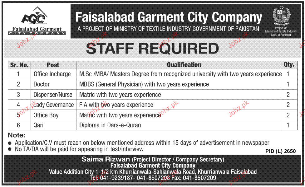 Apply as per details in job advertisement. Login to view further details of how to apply via https://www.jobz.pk online.