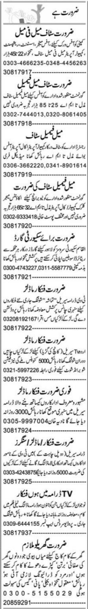 Vacant posts including computer call operator, office staff, office manager, singer, washer man, actor, assistant, receptionist, security guard, model, clerk computer, office boy, dhobi, computer operator, security staff and accounts manager are announced in Private Company Faisalabad, faisalabad Punjab Pakistan as per 4 June 2022 advertisement in daily Express Newspaper. Persons with Intermediate, Matric, Bachelor and Middle etc. education can apply.