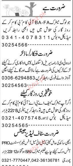Apply as per details in job advertisement. Login to view further details of how to apply via https://www.jobz.pk online.