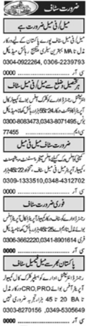 Private Company jobs advertisement dated about 23 June 2022 in daily Khabrain Newspaper invites application for the vacant post of office staff, clerk, receptionist, accountant, female office staff, customer relationship officer, public relation officer, computer operator, call operator, helper, call computer operator, computer call operator, office manager, office boy and assistant in Lahore, lahore Punjab Pakistan. Bachelor, Matric, Middle and Intermediate etc. educational qualification will be preferred.