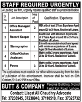 Todays New Jobs in Lahore